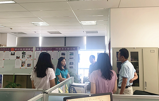 8月19日上午,昆明理工大学党委书记张英杰到审计处走访调研,并和审计部门全体职工深入进行交谈。实地了解在全面从严治党形势下审计工作开展情况,党委办公室有关同志陪同调研。
